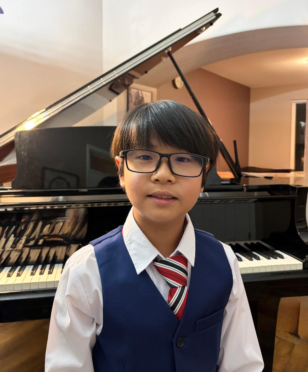 Kaden Wu, age 10, is a fifth-grade student at Challenge School, a Gifted and Talented (GT) program for advanced learners. He began studying piano at the age of five, inspired by his mother, a violinist, and has been under the guidance of Jasmine Steadman since 2021.
