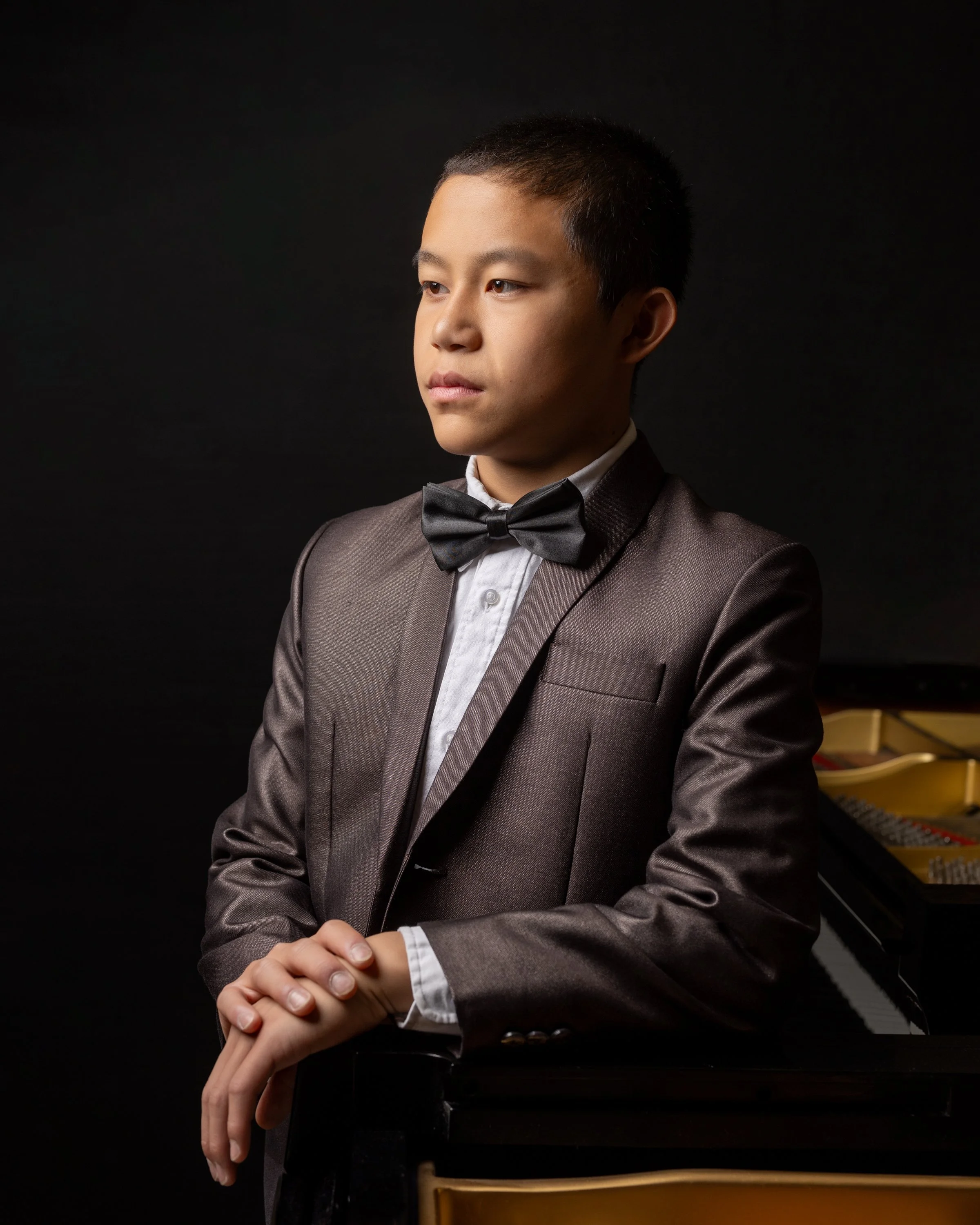 In his free time, Aiden enjoys reading, playing chess, and spending time with friends playing video games. As he continues his piano studies, he would like to continue to challenge himself in playing more classical piano pieces from Symphonies, Sonatas, and Concertos written by his favorite composers, Mozart, Beethoven, and Haydn. His goal is to develop stronger finger techniques and become more expressive and musical in his playing.
